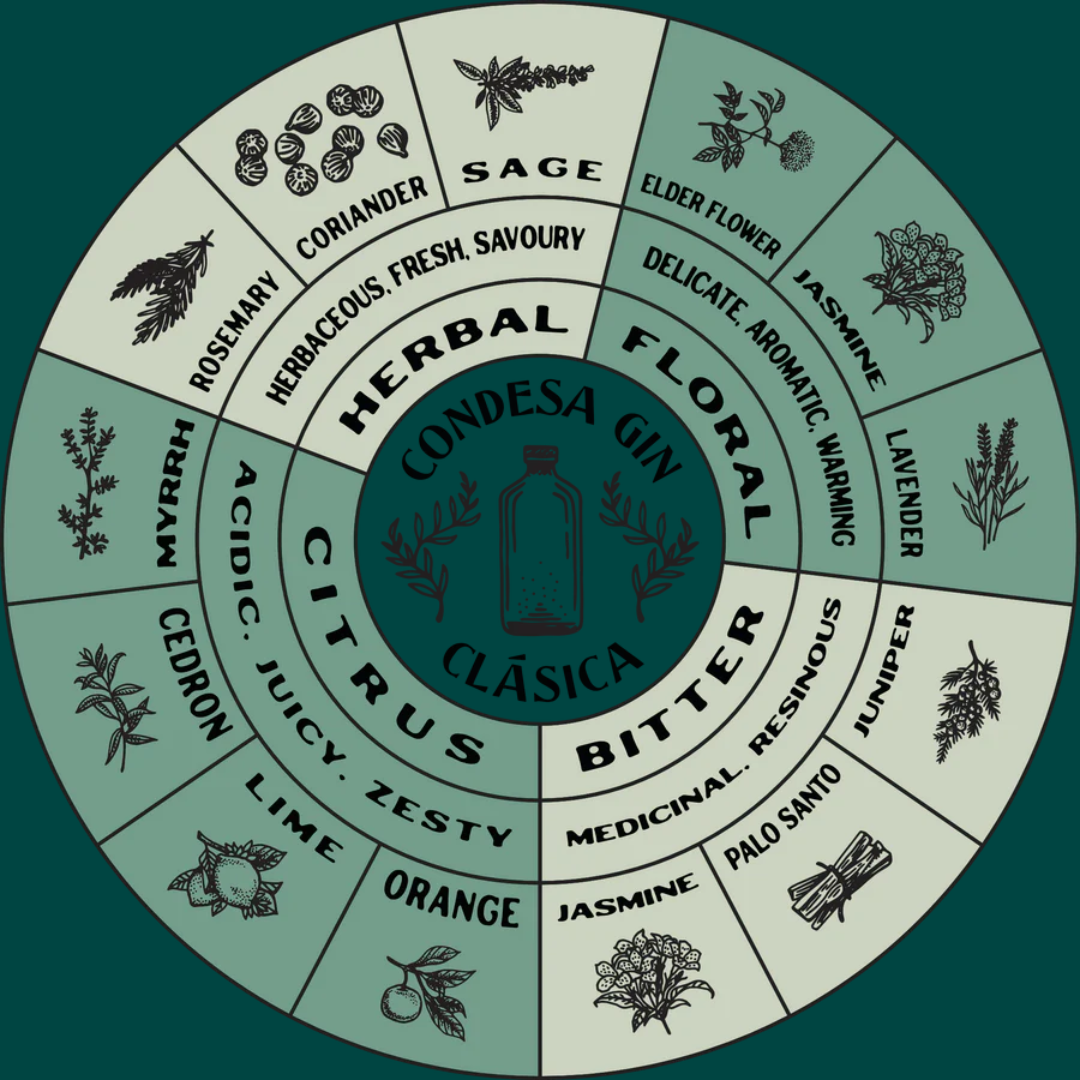 Condesa es mucho más que un gin: es un viaje sensorial inspirado en los botánicos sagrados de México. Destilada con precisión artesanal, su perfil seco se eleva con notas de salvia y la mística del palo santo, creando un destilado único que transforma cada cóctel en una experiencia ritual.